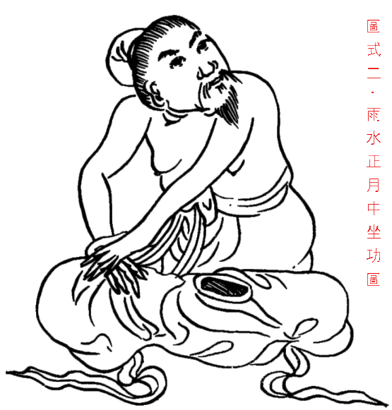 “坐功”方法:每日子、丑时,迭手按[月坒],拗颈转身,左右偏引,各三五度,叩齿,吐纳,漱咽。